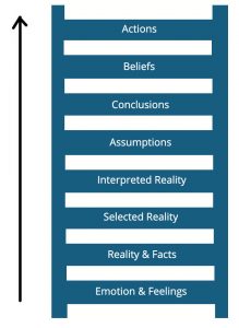 As leaders, our life-long work is to learn for ourselves how to stay at the bottom of the ladder and to coach others to do the same. The more time we can stay with our feelings and reality, the more creativity and choices we have available to us, and the less judgment and false stories we will spin.